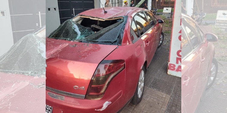 Como consecuencia, los postes se derrumbaron sobre un vehículo Citroen C4 que se encontraba sobre la vereda frente al taller. Solamente se registraron daños materiales.