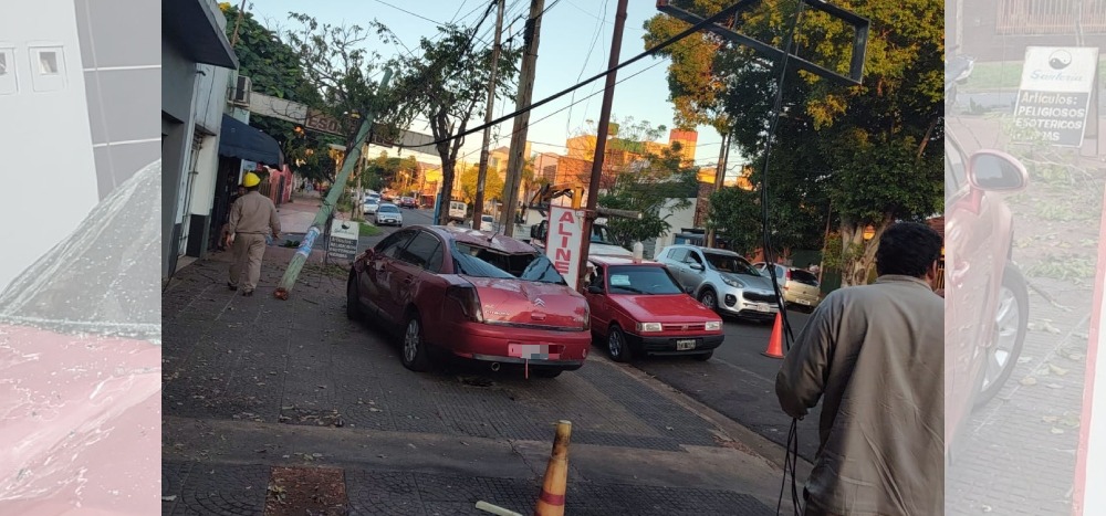 Como consecuencia, los postes se derrumbaron sobre un vehículo Citroen C4 que se encontraba sobre la vereda frente al taller. Solamente se registraron daños materiales.