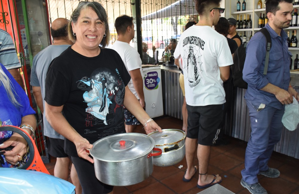 Desde muy temprano, en varios puntos de la ciudad cocineros se preparaban para esperar a que los comensales comenzaran a llegar con sus recipientes y ollas para retirar sus porciones. En diálogo con PRIMERA EDICIÓN, Tony Delgado de La Pérgola contó que prepararon 800 litros y que para antes de las doce del mediodía ya habían vendido 600.