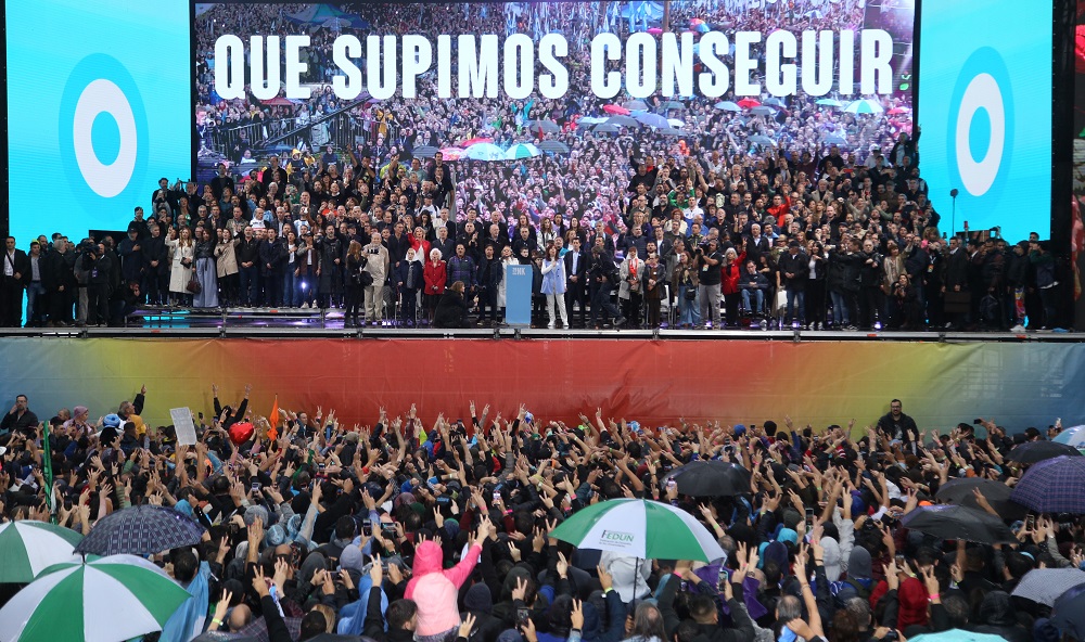 “El día que se cayó la falsa dolarización, explotó todo”, recordó la ex presidenta, al hablar del estallido de la crisis entre 2000 y 2001 en el inicio de su discurso, en medio de cánticos militantes que clamaban por “Cristina Presidenta”.
