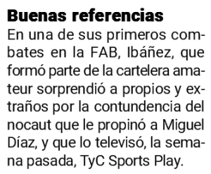 “Entrené bien para esta pelea. Fue una mano que entró justa, pero sé que tengo que seguir trabajando. Uno no sube al ring pensando en el nocaut, pero se dio”, comentó Ibáñez a TyC Sports.