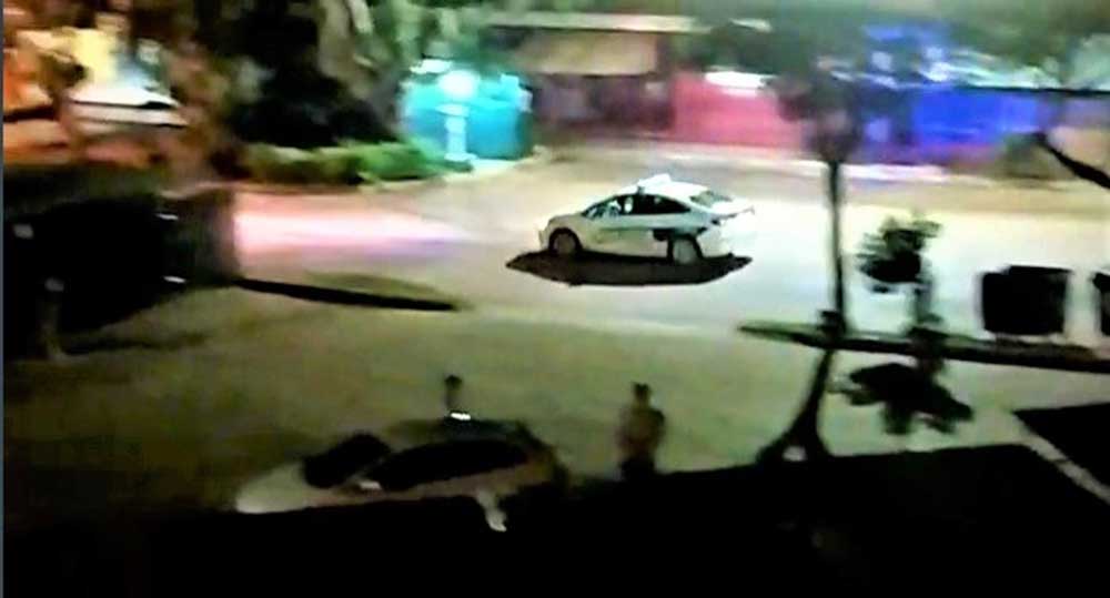 Un oficial de la Policía de franco, debió sacar el arma reglamentaria de su riñonera y realizar varios disparos para frenar a los violentos y expulsarlos lo más lejos posible. En este momento sobre calle Fermín Fierro transitaba una patrulla de la comisaría Decimosegunda que fue frenada por el policía armado quien le solicitó colaboración porque el incidente era grave y no podrían frenar a los iracundos si decidían volver. El conductor del móvil policial respondió que finalizaban el trámite en la seccional Séptima (Tambor de Tacuarí a dos cuadras) y retornaban pero no sucedió. Debieron aguardar con mujeres y menores resguardados en el salón más de media hora hasta la aparición de la patrulla jurisdiccional.