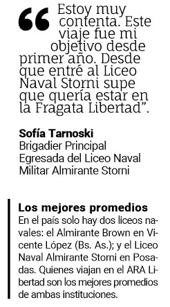 Eso mismo, ya que solo un alumno viaja en el ARA Libertad representando al Liceo Naval Storni: quien tenga el mejor promedio de su promoción, como fue el caso de Sofía.