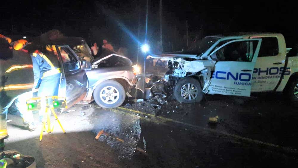 Una familia de turistas a bordo de una camioneta Volkswagen Amarok colisionó de frente con un vehículo similar pero de marca Chevrolet modelo S10 en la que transitaban dos misioneros.