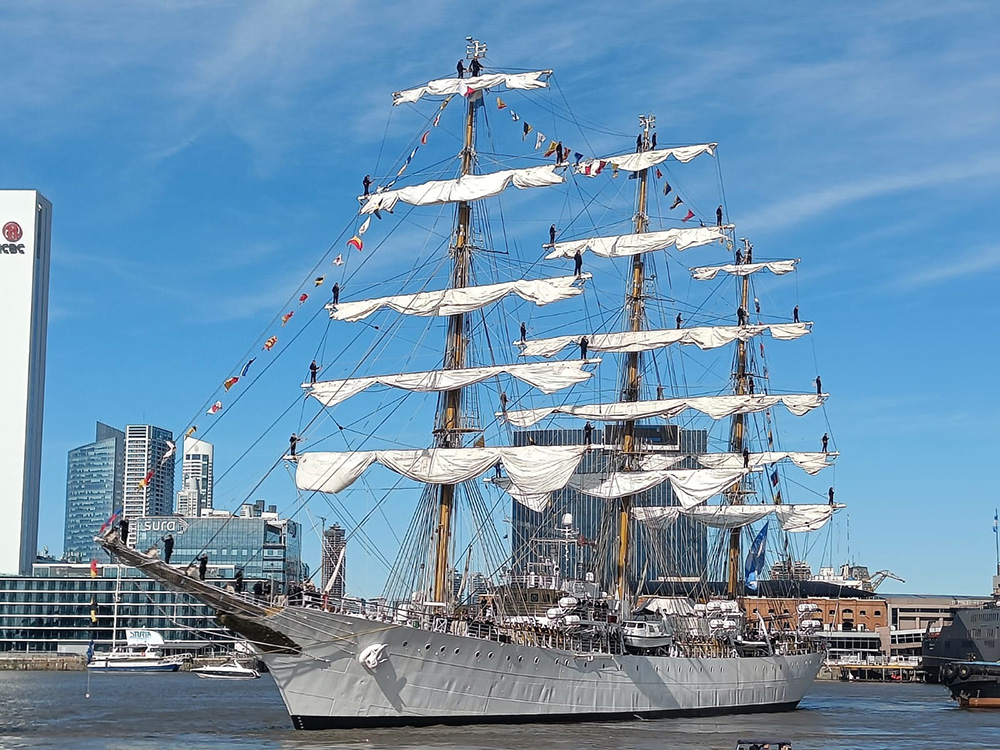 El buque escuela de la Armada Argentina zarpó a mediodía con 51 guardiamarinas en comisión de los cuales 17 son mujeres. Precisamente entre ellas se encuentra Sofía Tarnoski, joven eldoradense de 19 años que representa a la provincia, y al Liceo Naval Militar Almirante Storni