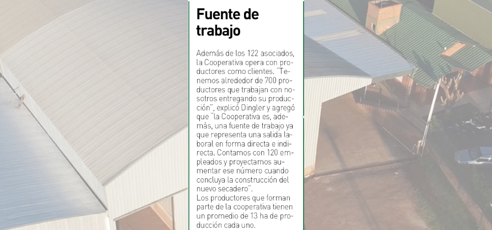 En respuesta a la demanda, y como consecuencia del incremento de la producción de la Cooperativa, comenzó la construcción de un tercer secadero. Con una inversión de 300 millones de pesos, “este secadero va a ser muy moderno, con intercambiadores de calor y la última tecnología que hay en secadero de yerba”, especificó Dingler.