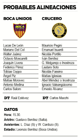 Luego del triunfo de la pasada semana, que le permitió cortar una seguidilla de tres derrotas consecutivas, Crucero del Norte enfrentará hoy a Boca Unidos, con la premisa de alcanzar un buen resultado para seguir remontando en el Torneo Federal A.