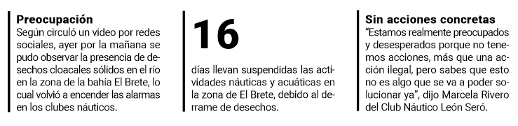 “A los socios les decimos que quienes quieren bajar por su propia responsabilidad pueden hacerlo, pero nadie lo hace. Nadie quiere entrar al río, estamos realmente preocupados y desesperados porque no tenemos acciones concretas, más que una acción ilegal, pero sabes que esto no es algo que se va a poder solucionar ya y lo que queremos es una solución lo más rápido posible”, concluyó.