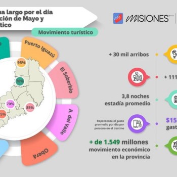 De acuerdo a los registros del Ministerio de Turismo de Misiones, los cuatro días de descanso cerraron con un promedio del 95% de ocupación hotelera en la provincia. A su vez, la tierra colorada recibió un número significativo de turistas de todo el país, con más de 30 mil arribos, con un registro de 111 mil pernoctaciones, en una estadía promedio de 3,8 noches y un gasto estimado de 15 mil pesos por cada visitante.