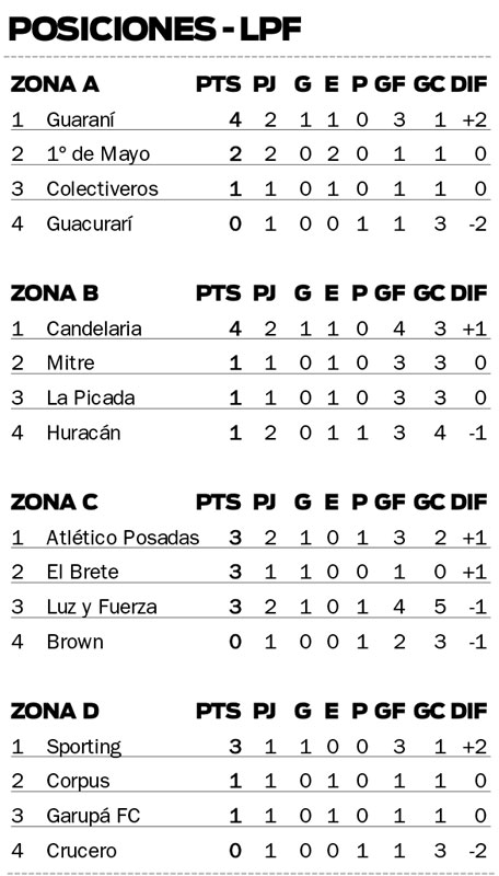 Hasta lo que va de la jornada, estos son otros resultados que se dieron: Jorge Gibson Brown 2 – Luz y Fuerza 3, Huracán 0 – Atlético Candelaria 0 y Guacurarí 3 – Colectiveros 1.