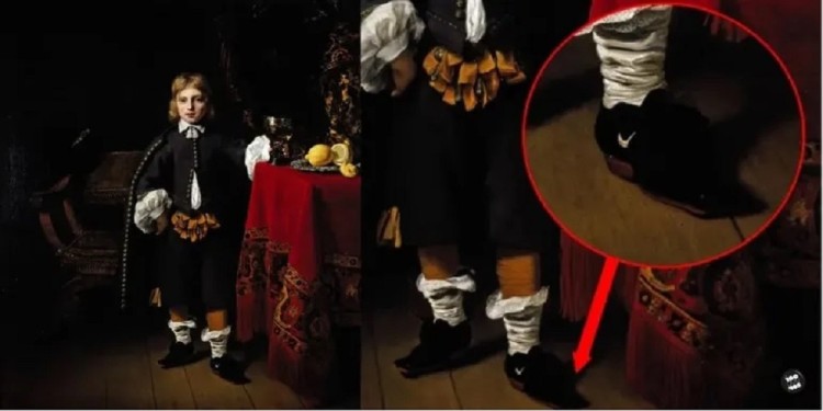 Es sobre la obra “Retrato de un niño”, cuyo autor es el pintor neerlandés Ferdinand Bol, en la que se observa un curioso símbolo en uno de sus zapatos, que se parece a la “pipa” de Nike y pensaron que podría ser “un viajero en el tiempo”.
