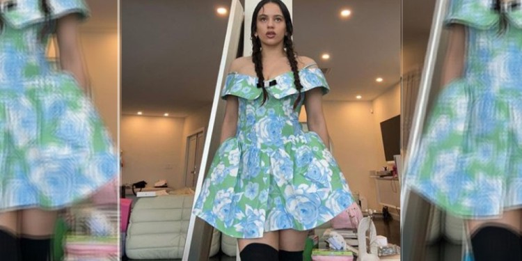 Con un vestido de flores estampado de color azul y verde, con escote de barco y volantes; unas trenzas y unas calzas negras por encima de la rodilla, la estrella catalana se grabó posando y colocándose los aros al ritmo de esta canción inédita.