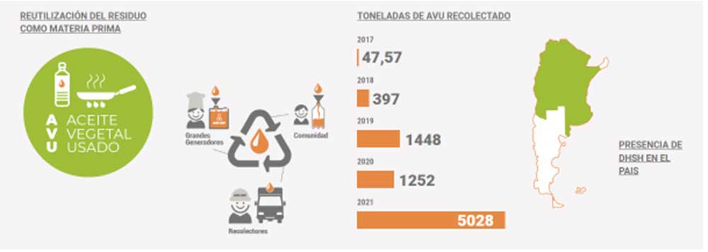 En el marco del Día del Ambiente, que se celebra cada 5 de junio, la empresa DH-SH lanzó una campaña llamada “Reciclá tu Aceite”, que recolecta y acondiciona aceite vegetal usado en 15 provincias del país y lleva desarrollados más de 250 puntos verdes en articulación.