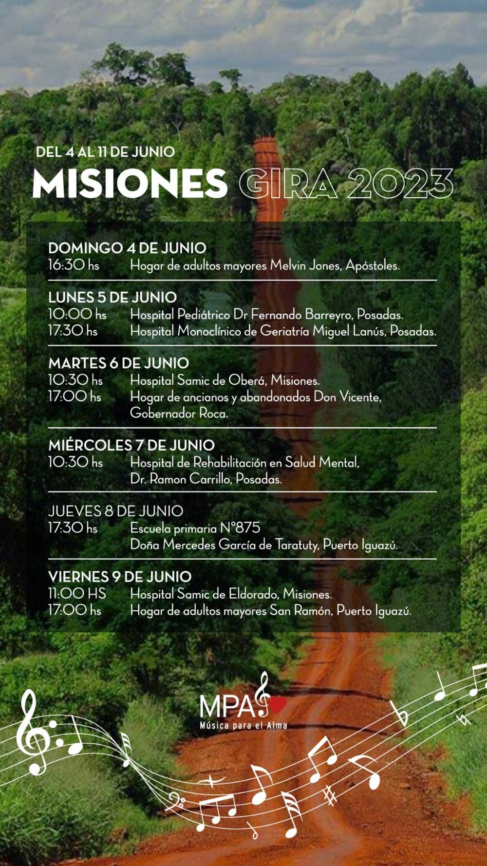 Música para el Alma (MPA) está formada por cantantes y músicos del Teatro Colón y distintos colegas de otras orquestas y coros profesionales con un total de 2.500 personas en total. Esta gira los pone en contacto con gente de todo el país, músicos e instituciones a las cuales quieren llevar este mensaje de paz.