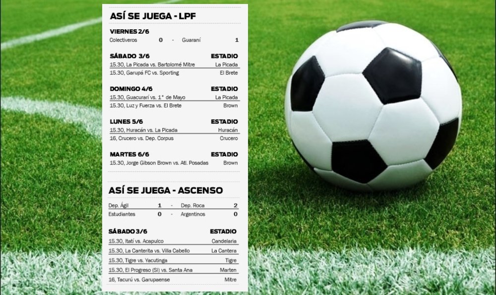 A su vez, el domingo en Villa Cabello, Guacurarí enfrentará a 1° de Mayo, en cancha de La Picada, por la Zona A; mientras que, por el mismo grupo, Luz y Fuerza se medirá con El Brete, en cancha de Brown.