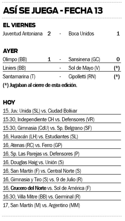 Esta tarde enfrentará a Sol de América de Formosa, equipo que pelea en los primeros puestos de la tabla, en un duelo que tendrá lugar a partir de las 16, en el estadio Andrés Guacurarí. El encargado de impartir justicia será el rosarino Maximiliano Macheroni.