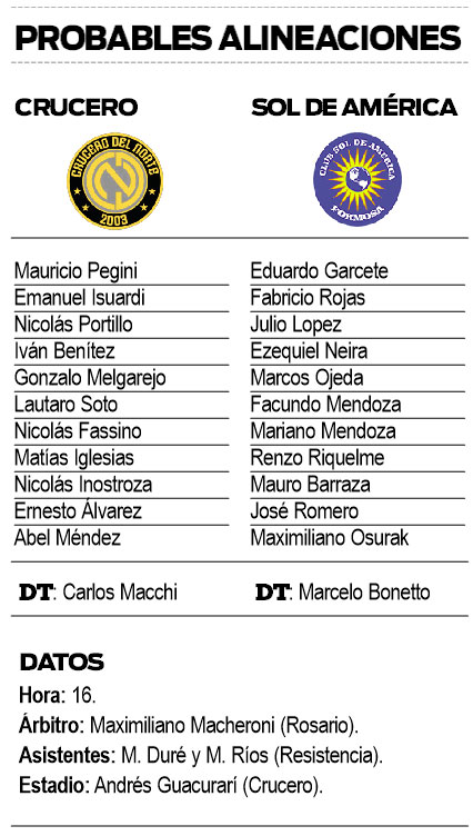 Del otro lado de la vereda estará Sol de América, que viene de igualar sin goles ante Gimnasia y Tiro de Salta y se mantiene expectante en la parte alta de la zona. El buen desempeño de los formoseños facilita la tarea del DT Marcelo Bonetto, que repetiría la formación.
