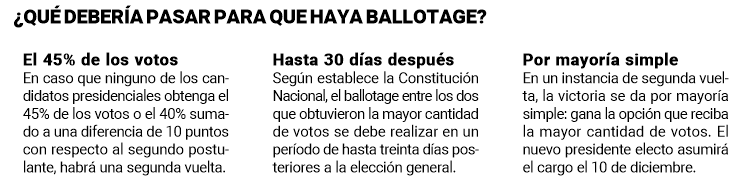 • Segunda vuelta o ballotage: 19 de noviembre.