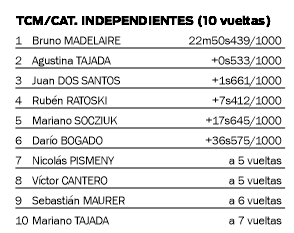 Finalmente, en la divisional TCM/Categorías Independientes, el campeón Bruno Madelaire se alzó con la victoria luego de sobrepasar a Agustina Tajada, quien había largado adelante y terminó segunda. Tercero fue Juan Dos Santos.