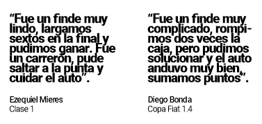 En lo que respecta a la Copa Fiat 1.4, los tradicionales “fititos”, la categoría también tuvo más de 30 autos. El protagonismo se lo llevaron rápidamente Marcelo Smichowski y Marcelo Da Cruz, pero desde más atrás comenzó a aparecer Diego Bonda, quien finalmente fue más que todos y se quedó con el triunfo en un apasionante mano a mano con Carlos De Ley.