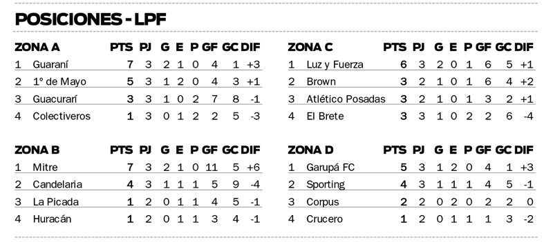 La tercera fecha arrancó el miércoles pasado con la goleada de Mitre sobre Candelaria, por 6-1; y continuó el viernes con el triunfo de Guaraní sobre Colectiveros, por 1-0.