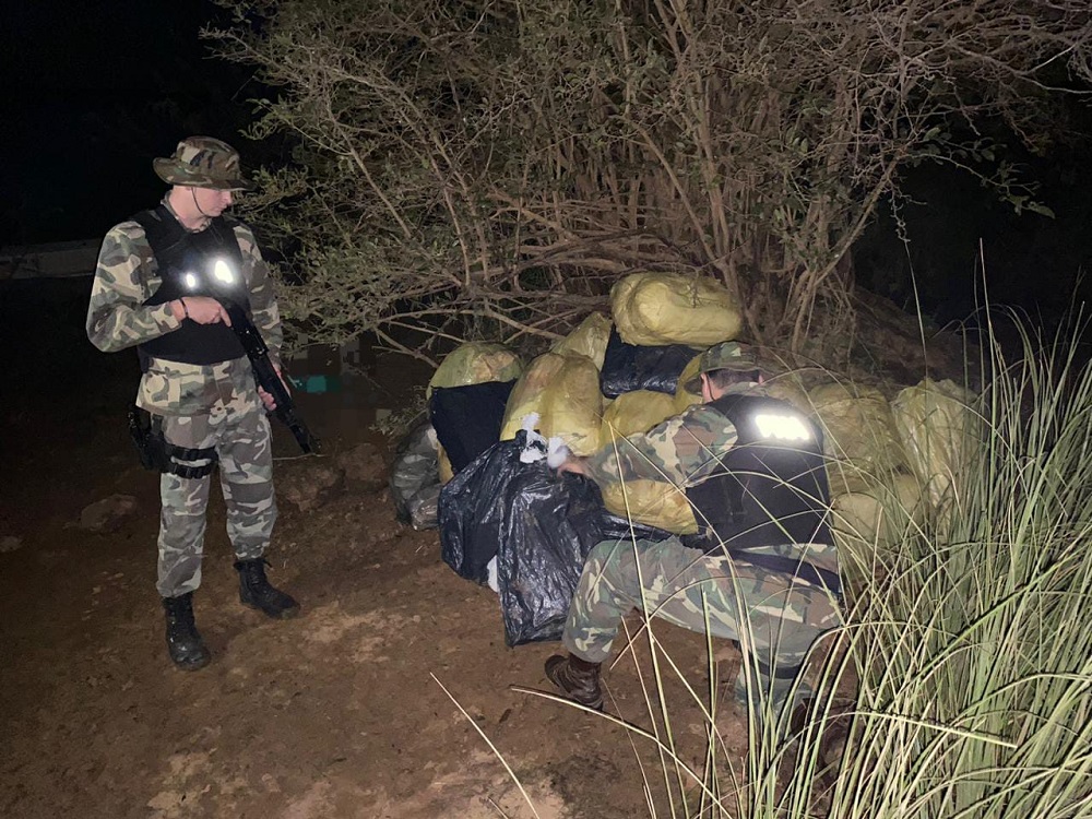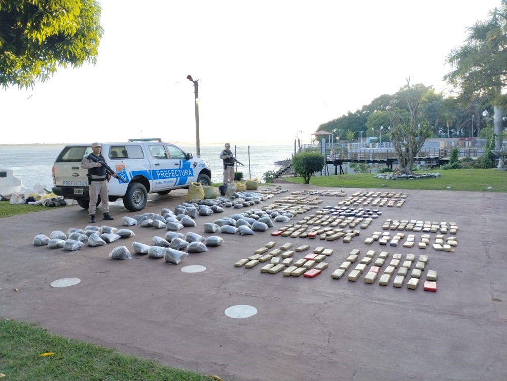 Por otro lado, en Paso de la Patria el personal de la Prefectura halló a la altura del kilómetro 1.253 del río Paraná, 27 bultos ocultos entre la vegetación.