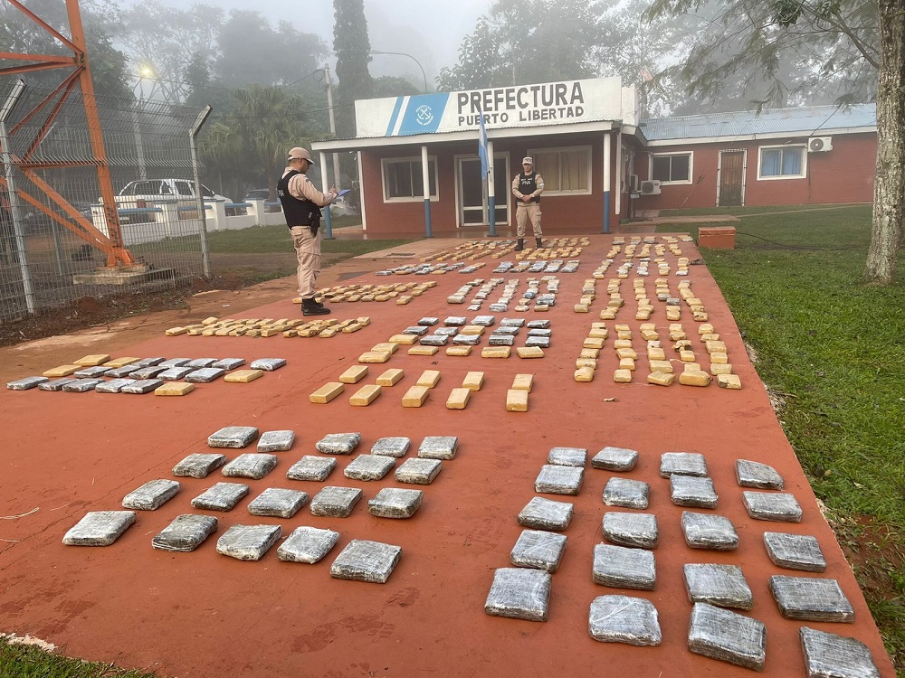 Efectivos de la Prefectura Naval Argentina incautaron en las últimas horas un total de 860 kilos de marihuana, en dos operativos llevados a cabo en Puerto Libertad, en Misiones y de Paso de la Patria, en Corrientes, en el marco de los controles que se realizan a diario en la zona de frontera para prevenir el delito.