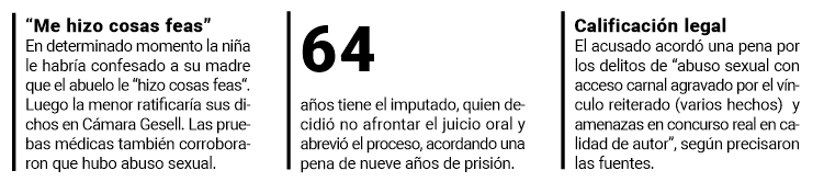Un hombre de 64 años admitió haber abusado en forma reiterada de su nieta menor, quien padece una discapacidad y acordó ante la Justicia una pena a cumplir de nueve años de prisión.