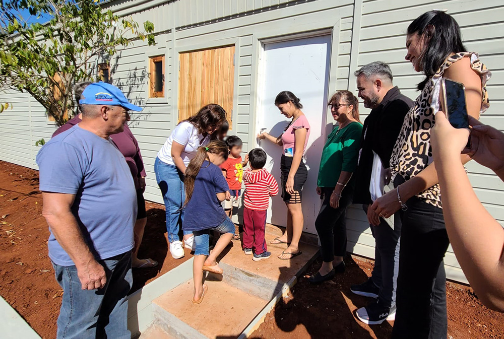 En la mañana de este viernes, los hermanos del Barrio San Lucas de Puerto Iguazú finalmente recibieron su nueva vivienda, que mejorará sus condiciones de vida. Se trata de una casa de madera que fue donada por el Instituto Provincial del Desarrollo Habitacional (IPRODHA).