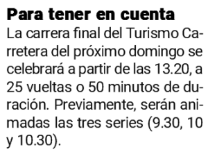 Por su parte, Rudi Bundziak, con nuevo equipo, buscará ser protagonista en la telonera TC Pista que este sábado tendrá dos series, a cinco vueltas, a las 17.15 y 17.35, respectivamente.