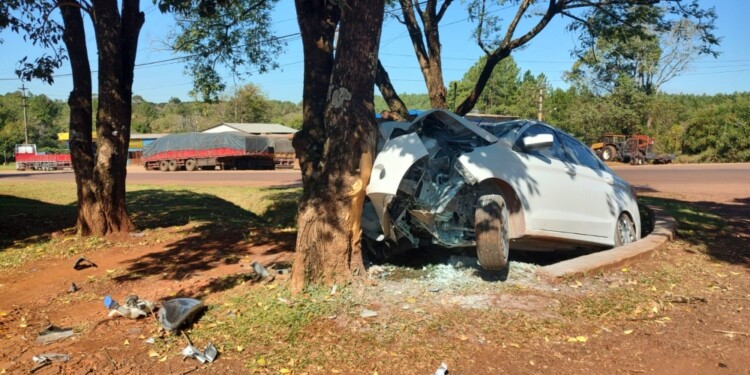 El conductor de un automóvil que se desplazaba por la ruta 12 en Eldorado intentó huir de un control de Gendarmería pero no llegó lejos ya que terminó chocando contra un árbol .
