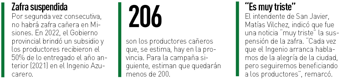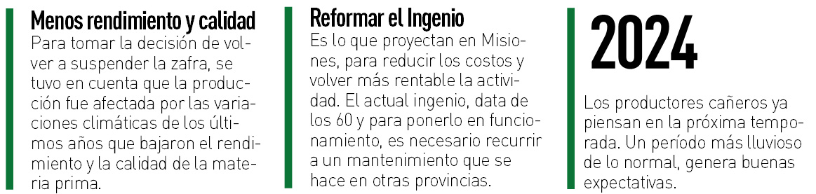Fue así que, tras hacer un relevamiento y advertir una proyección menos de la que se preveía, las autoridades decidieron, por segundo año consecutivo, suspender la zafra cañera en la provincia porque “no se justificaba” poner en marcha el Ingenio Azucarero de San Javier; cuyos gastos recaen en las finanzas públicas de la provincia.