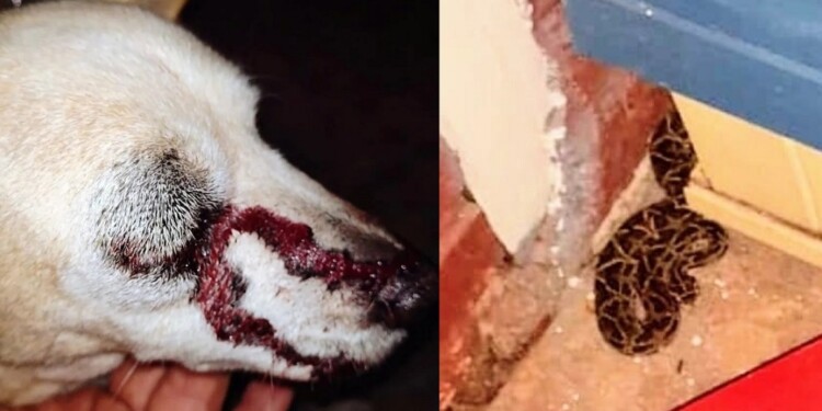 Ésta reportó que su perrita ladraba mucho y al salir al patio pudo observar a un reptil que había mordido al can en el ojo derecho causándole una hemorragia.