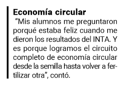 Finalizó contando que el producto es “de buena calidad y es una enmienda que mejoraría la característica del suelo y permitiría la asimilación de nutrientes”.