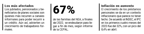 Otra de las financieras consultada por este Diario fue Crédito Argentino, donde ratificaron todo lo anterior. “Nosotros trabajamos mucho con beneficiarios de planes sociales y jubilados. Hoy, con la situación económica del país, se están acercando a sacar un préstamo para poder comprar después cuestiones básicas como comidas”, acotaron.