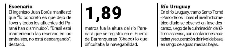 No obstante, Borús afirmó que “ante la situación persistente de aguas bajas que tuvimos entre 2020, 2021 y 2022, Puerto Iguazú está preparado para resolver el tema de la captación fluvial para consumo urbano”. “Obviamente que no es lo ideal, porque la logística es más cara porque es más complicado, pero está resuelto. Estamos mejor en materia de atención de la bajante que en marzo del 2020”, agregó.