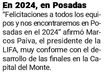 Por su parte el presidente de la LIFA, Marcos Paiva, resaltó que el evento fue declarado de interés deportivo provincial por la Cámara de Representantes. “Vamos a seguir trabajando para que el fútbol de profesionales se siga asentando en la zona centro con la LIFA y en Posadas con la ACIADEP. Gracias por el apoyo, por el acompañamiento a toda la Comisión Directiva que estuvo trabajando mucho. Felicitaciones a todos los equipos y nos encontraremos en Posadas en el 2024” afirmó el dirigente.