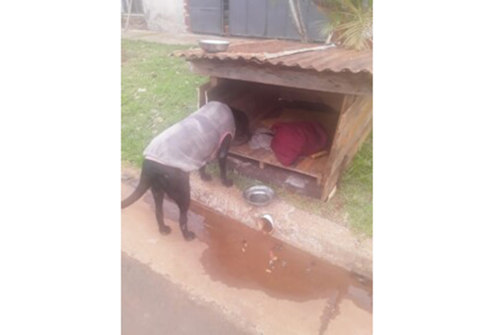 Así, todos la miman y La Negrita iba de casa en casa, durmiendo donde más le convenía en cada momento, pero “este año le dije a mi esposo: ‘no quiero que Negra pase un día más de frío o en la lluvia’ y como teníamos machimbre de nuestra obra y chapas de zinc él le armó una casita de 1.30 x 1.20 forradita y con piso alto. Le coloqué unas gomas espuma y trapos de lana. El sábado ya durmió y comió en su casita, y una vecina que también la alimenta la vistió”, por eso la perrita lleva puesta una capita abrigada también.