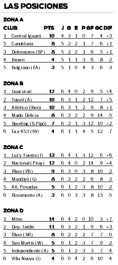 Por su parte, en la zona C, el sábado, Atlético Posadas recibirá a uno de los líderes del grupo, Nacional de Puerto Piray, desde las 15.30. Mientras que los otros dos partidos de la zona se disputarán el domingo.