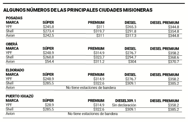 La brecha en los precios de los combustibles se agigantan a tal punto que entre la capital provincial e Iguazú puede haber una diferencia de hasta $15 por litro de nafta súper, según la marca que se elija cargar.