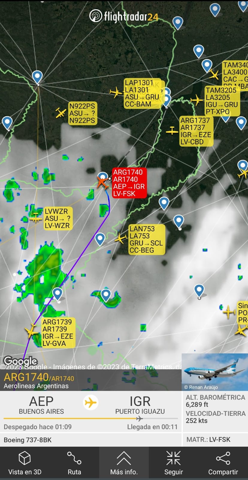 El Boeing 737 LV-FSK cubría la ruta Buenos Aires – Iguazú con 141 pasajeros a bordo. pic.twitter.com/8onuUtW52T