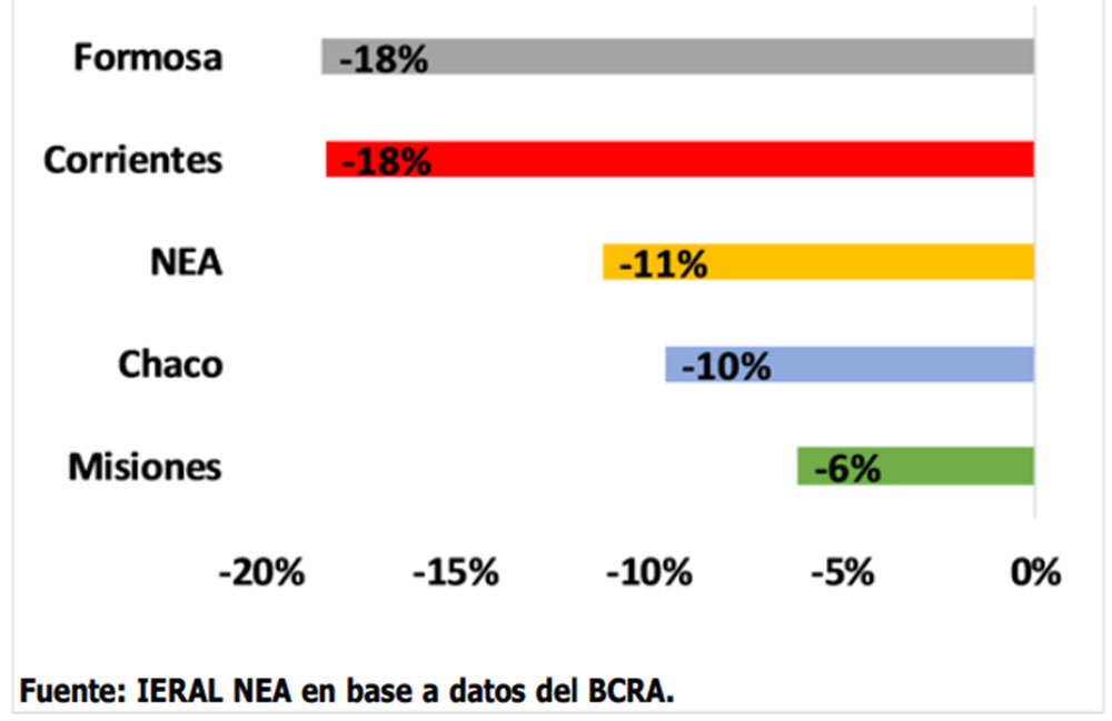 Si el parangón es con el primer trimestre de 2022, todas las provincias del NEA mostraron mermas siendo Formosa y Corrientes la que más bajas exhibieron con 18% cada una, Misiones se colocó en el otro extremo del escalafón con apenas 6 puntos porcentuales de caída, en tanto Chaco transitó por la medianía regional con descenso del 10%.