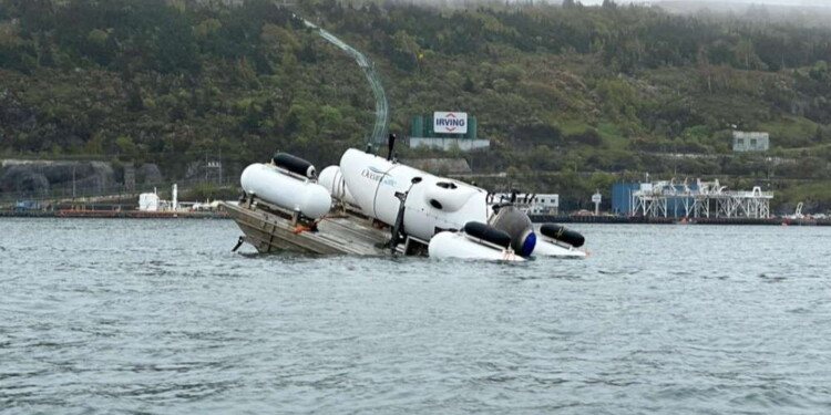 SIN RASTROS, POR AHORA. El sumergible Titan, operado por OceanGate Expeditions para explorar los restos del hundido Titanic en una imagen frente a la costa de Terranova.