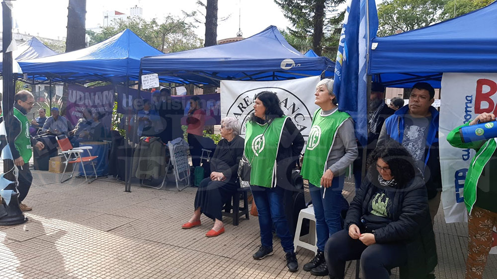 Los docentes del Frente de Trabajadores de la Educación en Lucha (FTEL) comenzaron ho,y a las 9 aproximadamente, un acampe en la plaza 9 de Julio de Posadas en el marco del plan de lucha de paro de 96 horas para ser convocados a discutir salario.