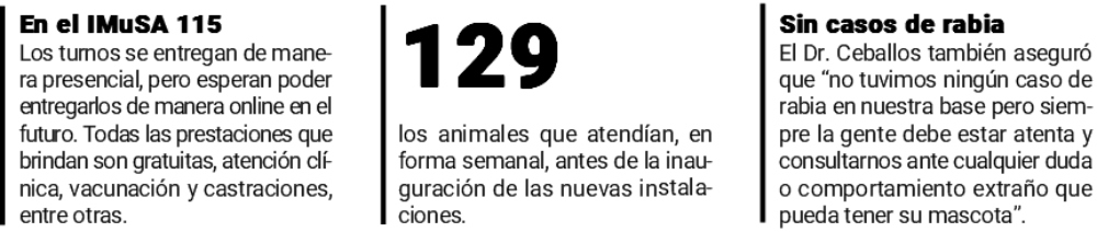 Consultado sobre cuántas castraciones estaban realizando en las ahora, “antiguas” instalaciones, Ceballos contó que “yo era el único veterinario que estaba en la Base 115 y atendía los lunes, miércoles y viernes, donde hacía la parte de clínica básica, que abarca desparasitaciones, antirrábicas y atendíamos un promedio de 129 animales semanalmente. Y en cuanto a cirugía, entre 6 a 8 cirugías hacíamos, solo martes y jueves y exclusivamente a la mañana”.