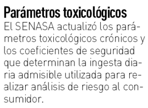 En ese sentido, como resultado de la revisión de antecedentes, la Dirección actualizó los parámetros toxicológicos crónicos y los coeficientes de seguridad que determinan la ingesta diaria admisible utilizada para realizar los análisis de riesgo al consumidor, de los usos aprobados del clorpirifos en nuestro país.