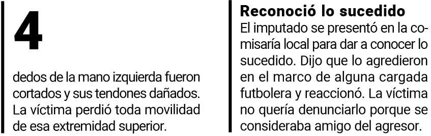 En la investigación y las pericias se desprendió que la víctima intentó cubrirse de las estocadas y sufrió cortes en ambas manos, en la izquierda los tendones de cuatro dedos que hoy en día le han dejado sin movilidad por completo pese a las cirugías posteriores.