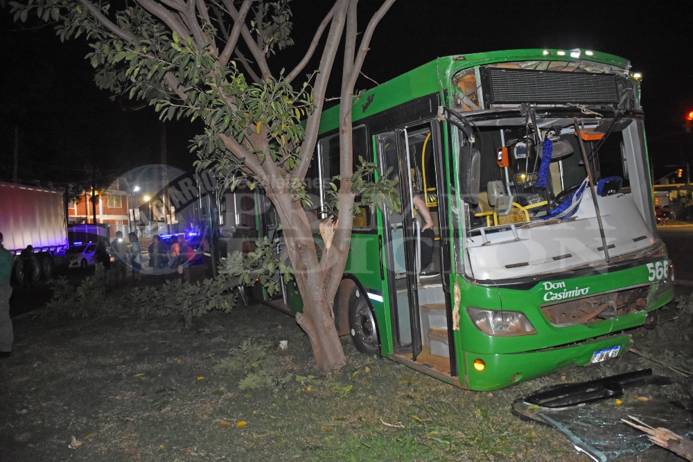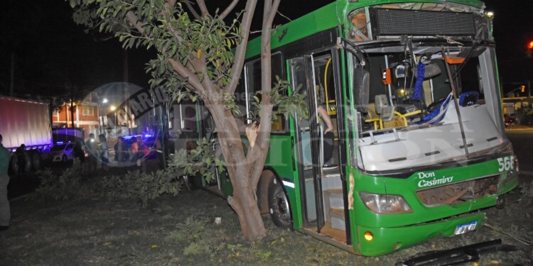 Un colectivo urbano de pasajeros perteneciente a la línea 110 despistó este sábado de la avenida Quaranta (exruta nacional 12) en su intersección con la calle 101 frente a un mercado mayorista de productos alimenticios y de limpieza.