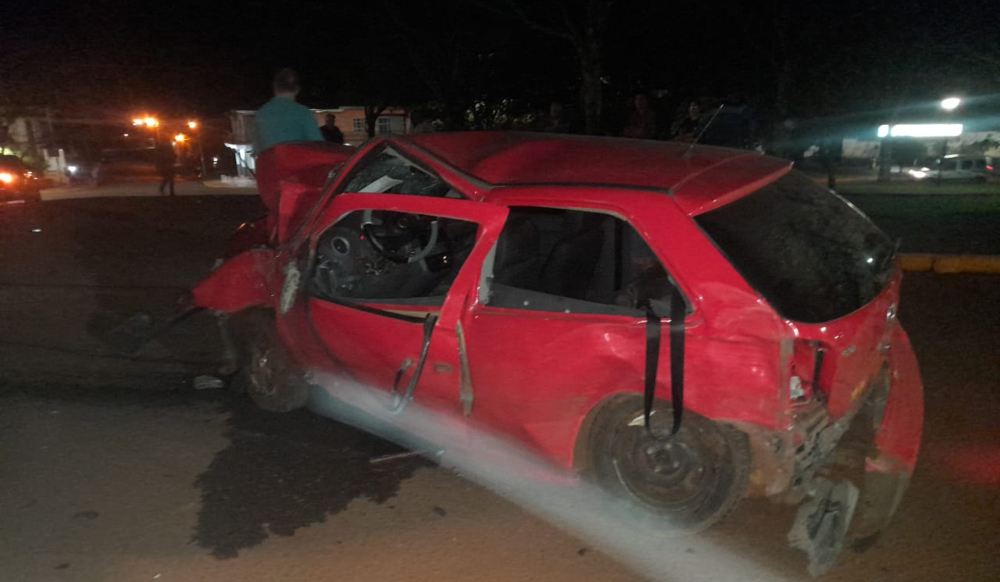 A raíz del impacto, el poste cayó encima del vehículo, precisamente sobre el lado del conductor, lo que provocó severos daños en el rodado y lesiones graves en el joven.