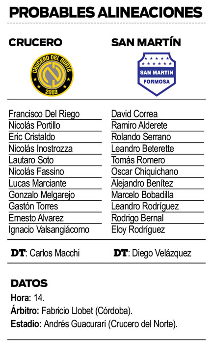 Enfrente estará San Martín, que viene de caer de local ante Gimnasia y Tiro de Salta (1-0) pero sigue en el cuarto puesto, es decir, en zona de clasificación. El Santo sabe sacar provecho de la pelota parada y, sobre todo, de la contra, por lo que Crucero deberá estar atento y no descuidarse atrás.